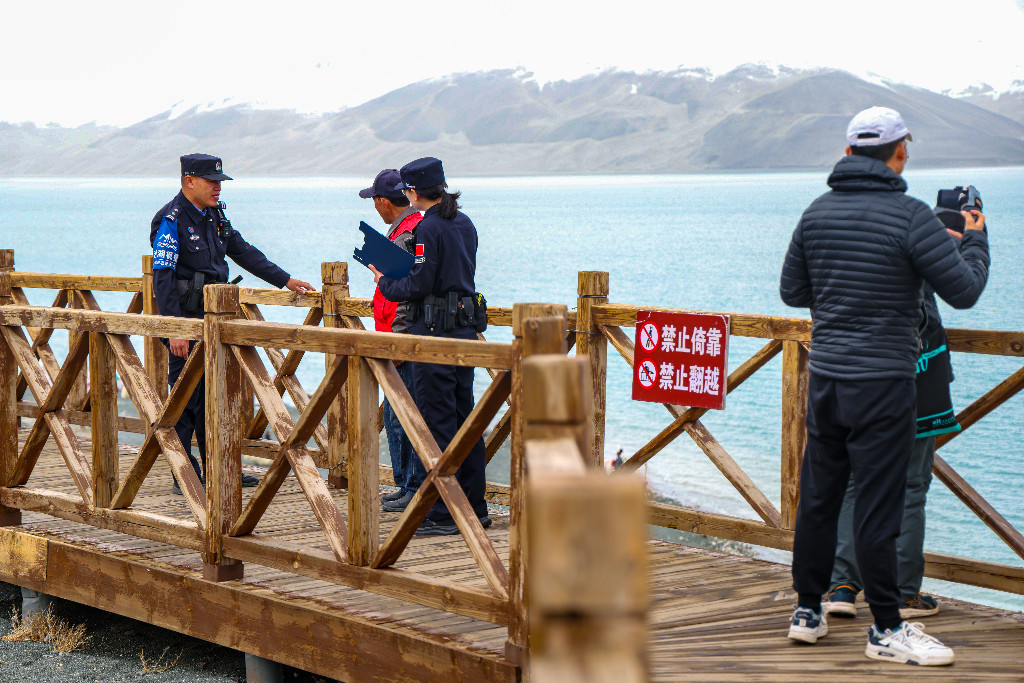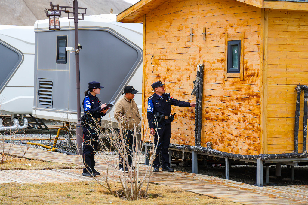 五一旅游高峰临近,4 月 29 日,新疆出入境边防检查总站克州边境管理支队加克拉克边境派出所民警深入辖区白沙湖景区,对观景台、木栈道等游览设施及周边民宿开展节前安全大检查。民警重点排查设施结构、消防用气、住宿管理等安全隐患,现场督促整改问题、宣讲安全常识,压实经营主体安全责任,全方位消除各类风险漏洞,切实守护广大游客人身财产安全,为五一假期景区平稳有序运营筑牢安全防线。(彭虎成)