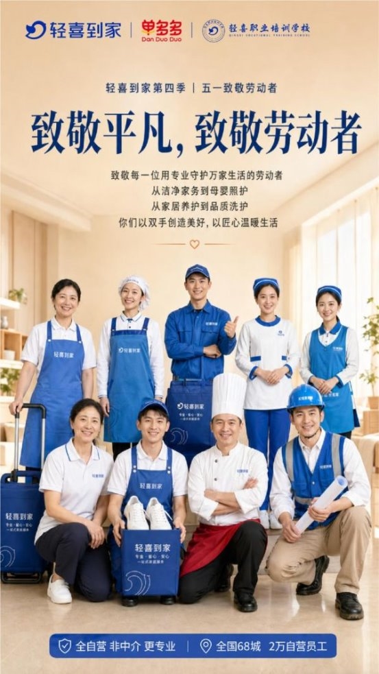 劳动节的意义,从来不在鲜花与口号的堆砌,而是致敬每一份脚踏实地的坚守,善待每一份认真付出的劳动。过去十年,轻喜到家以全自营模式为核心,以人文关怀为底色,始终践行初心,让平凡劳动者拥有尊严、收获成长、奔赴未来。