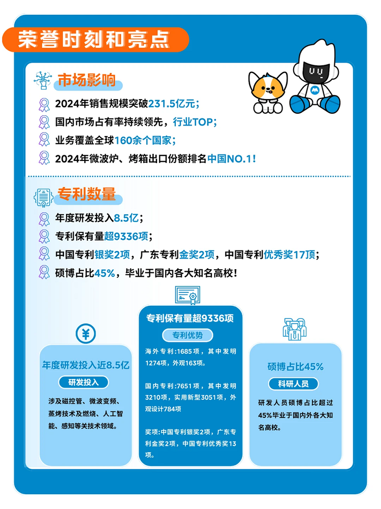 在专利布局层面,近年来美的持续加大研发投入。2025年上半年,美的在研发方面投入87.67亿元,同比增长14.41%。截止2025年底,美的累计申请微蒸烤相关专利超2000项,未来三年将投入超过600亿元用于技术研发,让美的在微波核心技术上具备了更强的主动权。