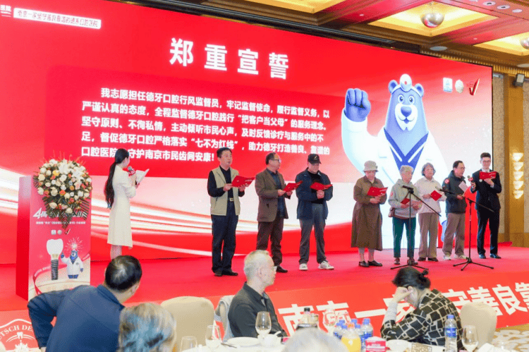在全场嘉宾的共同见证下,德牙口腔领导、专家团队与特邀嘉宾完成 4 周年启动仪式,象征德牙口腔扎根南京、服务市民的坚实成果,也寓意《南京看牙避坑白皮书》将惠及更多市民,助力医院开启全新发展篇章。