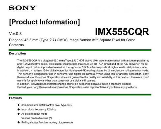 我们上一次听到1亿像素的相机似乎还集中于中画幅领域,索尼是其中几款相机传感器的供应商。而近日外媒曝光,索尼推出了一块型号为IMX555CQR的传感器,这款传感器采用全画幅设计,并有着高达1.02亿像素。外媒称这款传感器或将使用在α9R这款微单上,并与此前谣传的EOSRs/EOSR3高像素机型进行竞争。