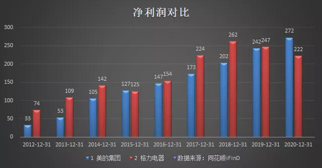 当年年报数据显示,美的集团实现营业收入2857亿元,净利润272亿元;同期,格力电器实现主营收入1705亿元,净利润222亿元。对比看,美的集团营收超出格力1152亿元,净利润则超过后者50亿元,这也是近五年来美的在净利润方面首次超越格力。