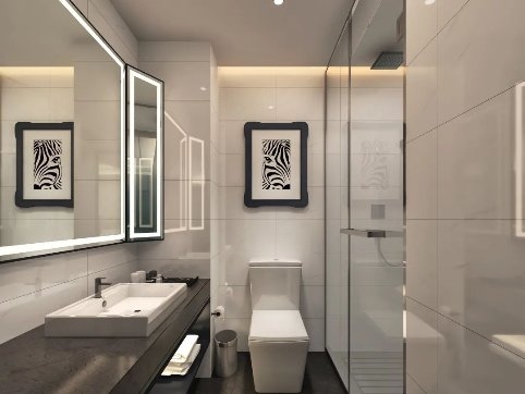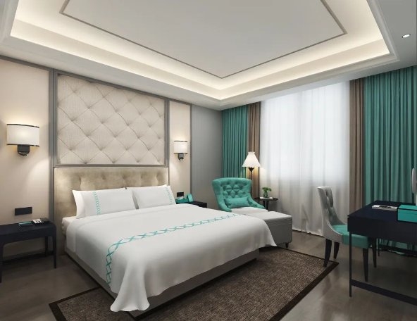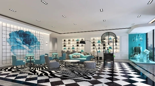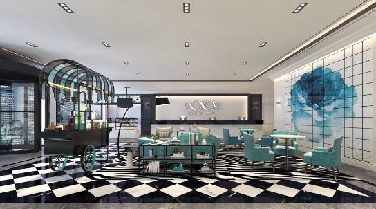 步入酒店,法式轻奢的设计风格在Xana Blue希岸蓝的环绕中,营造出了一个精致优雅的旅居空间,将幸福的氛围感拉到满分。