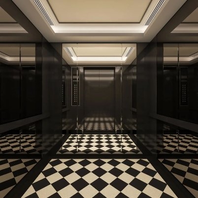 在提拉行李的工作人员引导下,进入全面镜设计的电梯,在打破空间局限的无限延展中体验精致感,并拍照分享。