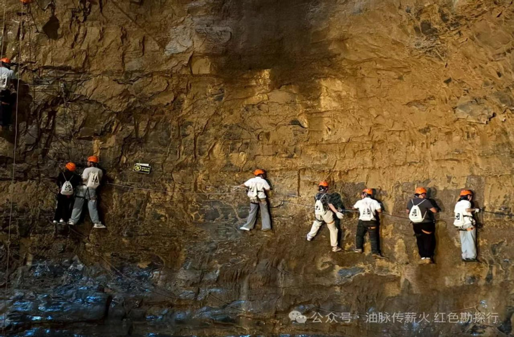 “脚下就是地质教科书!”在双河洞飞拉达项目现场,队员们沿近乎垂直的岩壁攀行,指尖掠过亿万年沉积的岩层纹理 —— 湿润苔藓藏着溶洞微生态的秘密,不同色泽与硬度的岩层标注着地质运动的时序,岩壁凹穴与褶皱则成为 “溶蚀作用”“构造挤压”等课本概念的直观注脚。攀爬过程中,“稳住,踩这里!”的相互提醒、及时伸出的援手,更让团队凝聚力转化为共克险峰的实战力量。