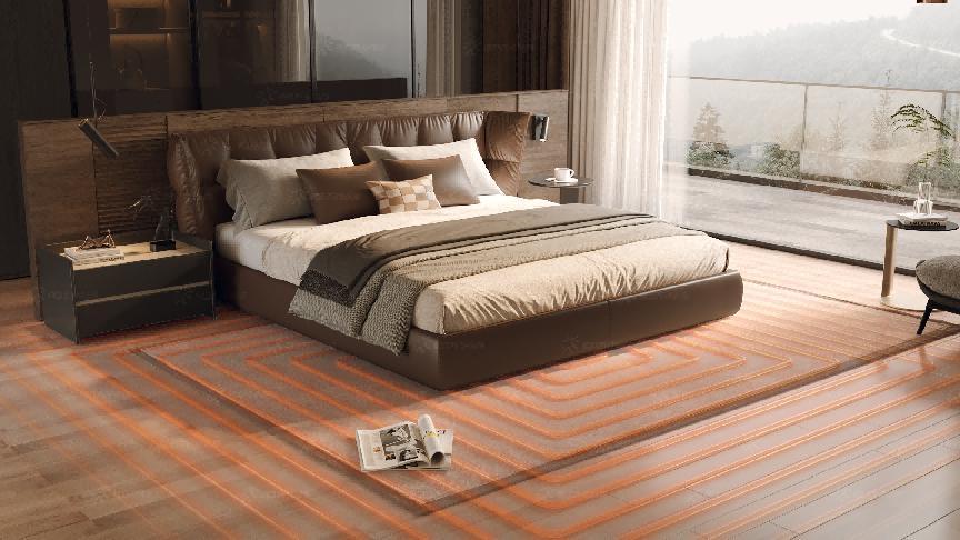 其中,最具代表性的创新成果之一,是热立方推出的“新一代高端地暖系统”。这一系统打破了传统空调依赖“氟系统”强冷输出的逻辑,通过地面“水循环”系统实现“无风感降温”,整合“采暖+制冷+除湿”三大功能,真正实现一年四季的全屋环境调节。