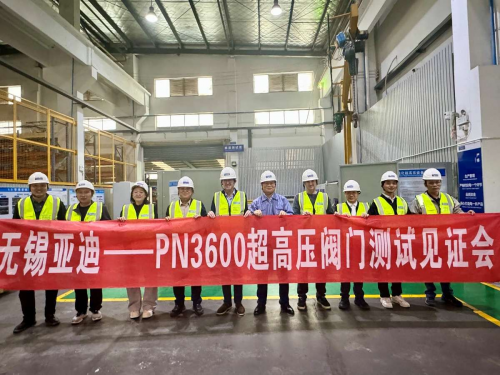 [无锡,2025年10月20日电] / [Wuxi, October 20, 2023]今日,由无锡亚迪主办的“PN3600超高压阀门测试见证会”在无锡圆满举行。会议由国内外石化领域多家企业的专家共同见证,标志着国产超高压阀门技术取得了重大突破。 The "PN3600 Ultra-High Pressure Valve Test Witnessing Conference," hosted by Wuxi Yadi, was successfully held in Wuxi today. The event, witnessed by experts from several authoritative institutions in China's petrochemical sector, marks a significant breakthrough in domestic ultra-high pressure valve technology.