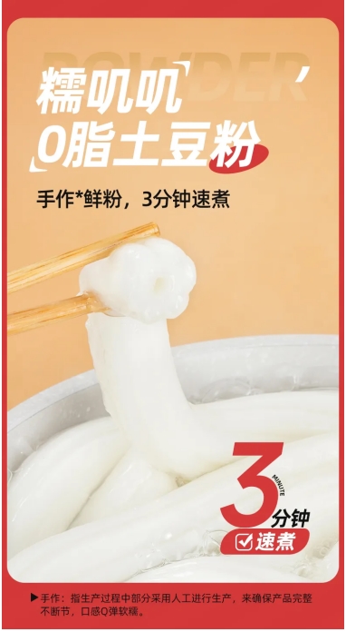 同时,产品采用0脂非油炸配方和工艺,以土豆淀粉为主料,兼顾了健康性与口感满足感。