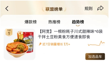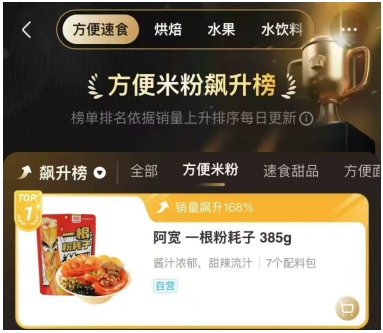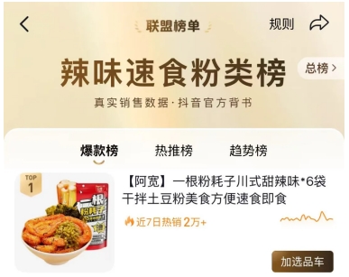一根粉耗子荣登抖音辣味速食粉类爆款榜、趋势榜双榜榜首