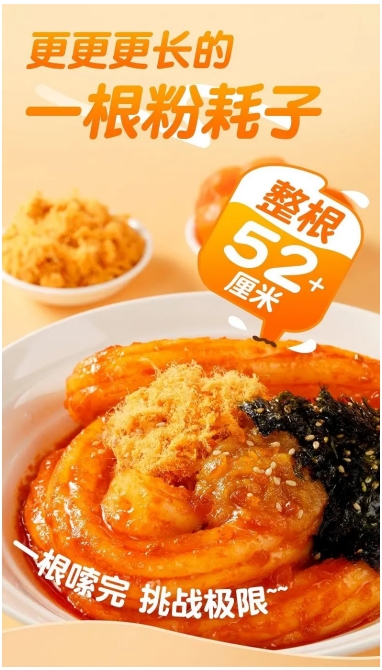 在产品测试阶段,为了让45厘米超长的粉耗子在口味上可以有更好的体验,研发团队进行了多次实验,最终确定了其中空桃花状造型,这种粉体结构有效提升了料汁的吸附能力,使每一口都能保持丰富滋味。