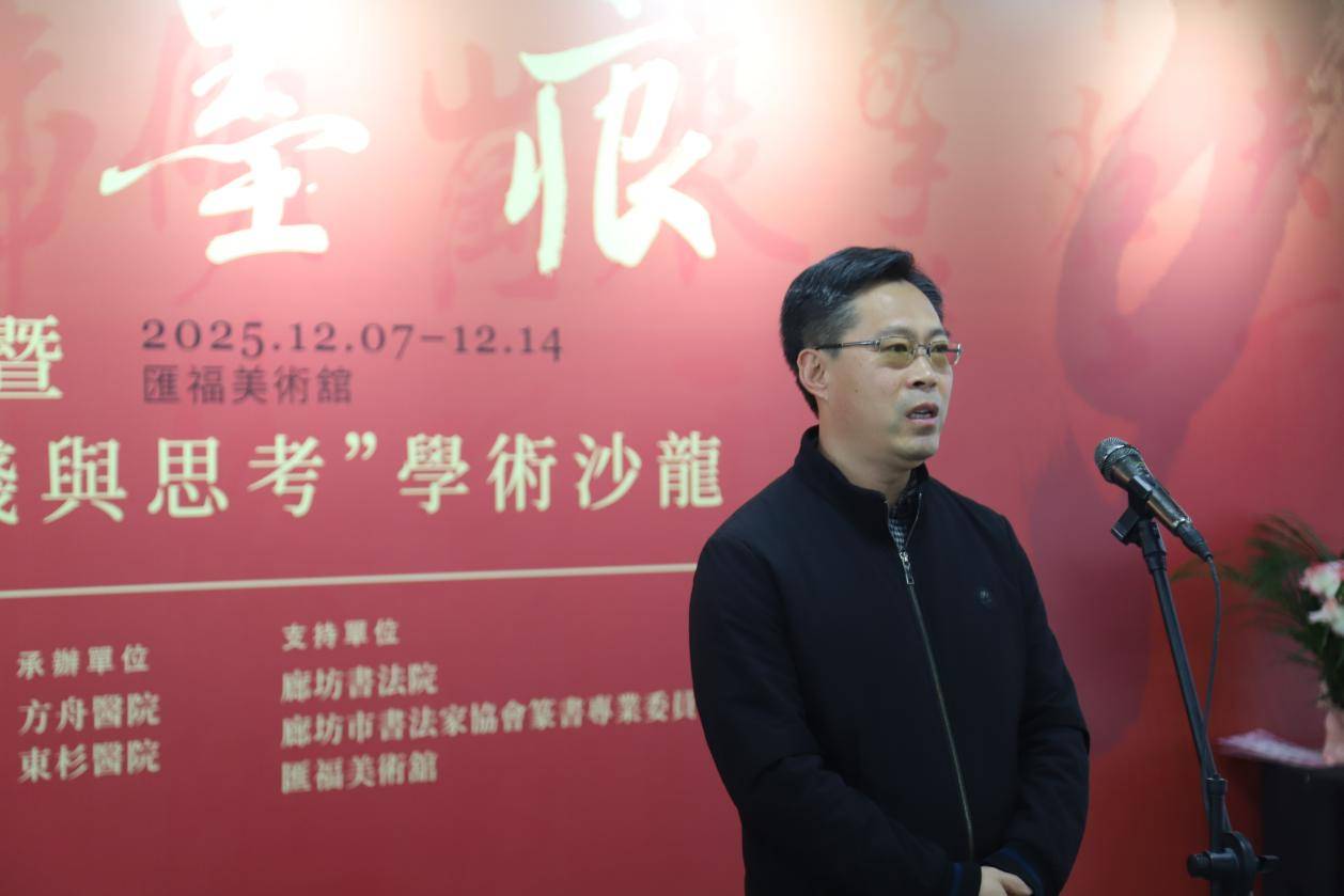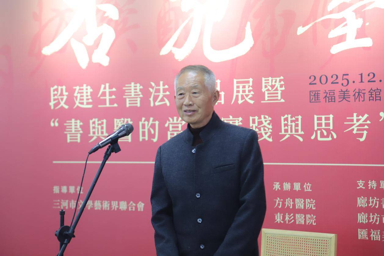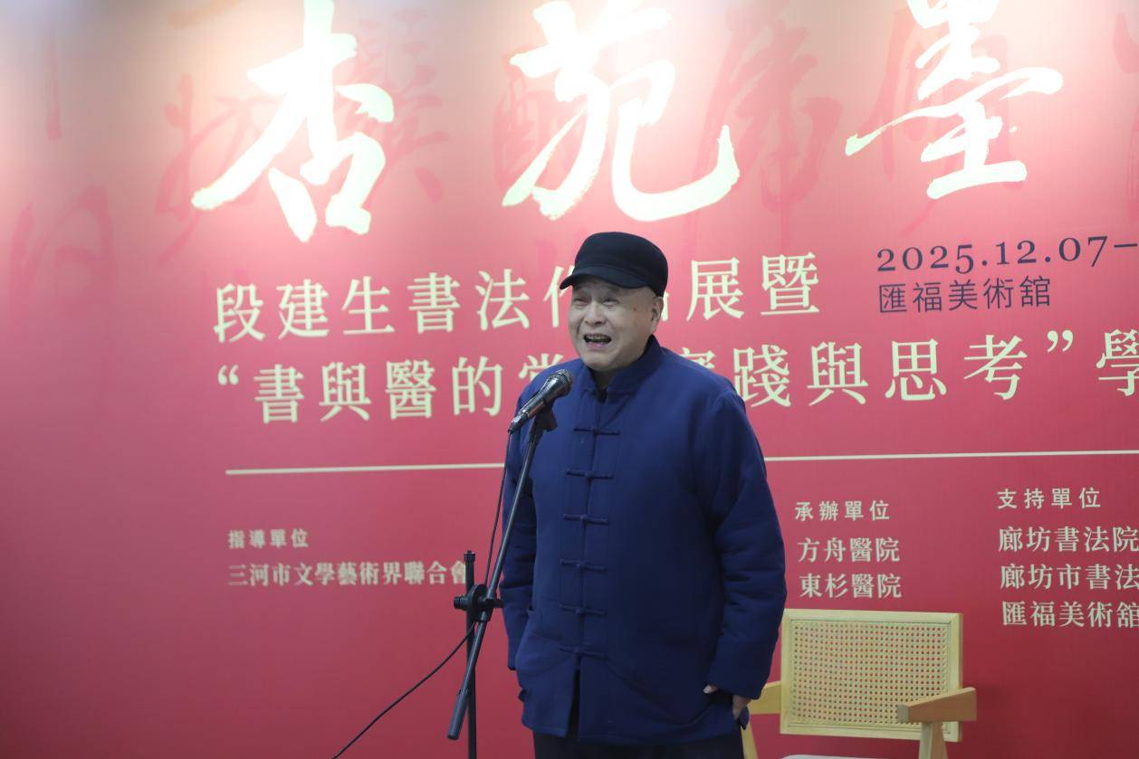 岐黄翰香承千古,笔墨丹青续文脉。2025年12月7日,由三河市文学艺术界联合会指导、燕郊书法家协会主办,方舟医院与东杉医院联合承办,廊坊书法院、廊坊市书法家协会篆书专业委员会鼎力支持的“杏苑墨痕——段建生书法作品展暨‘书与医的当代实践与思考’学术沙龙”,在北京东燕郊左堤路艺术区汇福美术馆隆重启幕。