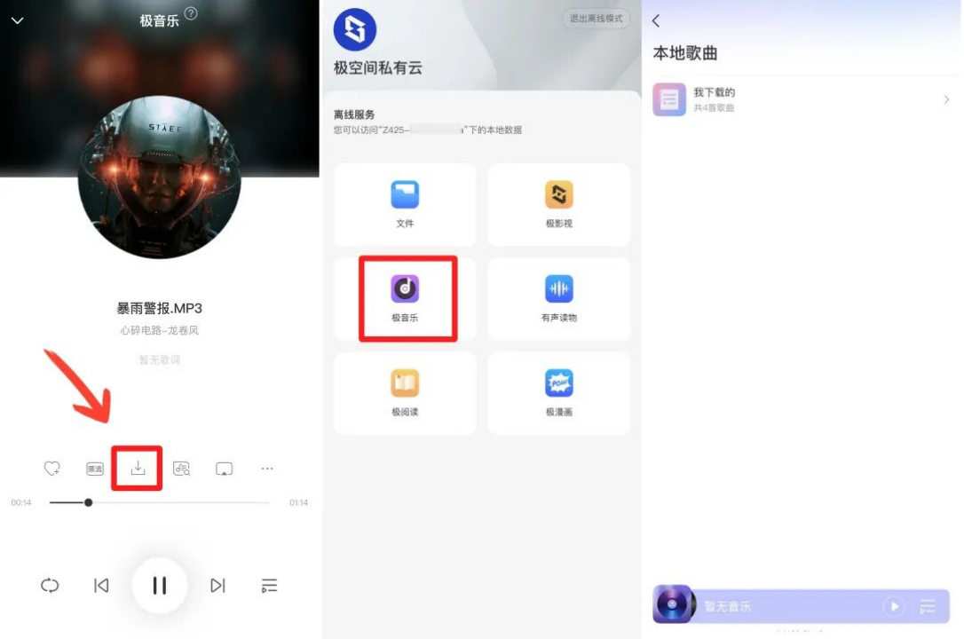 户外露营、自驾出行等场景中,稳定的网络往往难以保障。极空间Z4Pro+的离线音乐功能,让用户出发前可在极音乐中筛选专属歌单一键缓存,离线模式下即点即播、节奏连贯,完美适配高码率无损音乐格式,搭配蓝牙音箱就能打造专属移动音乐厅,为户外体验增添惬意。