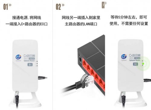 使用起来更是简单到超乎想象!即插即用,完全不需要复杂设置!只要把它插上电源,用网线接在国外家里的路由器或是 Modem 后面,手机、PAD、电脑、电视盒子等智能设备连接上 C + 路由器的网络信号,瞬间就能和国内一样畅快使用啦!想看的电影电视节目随意刷,再也不用被地区限制束缚!