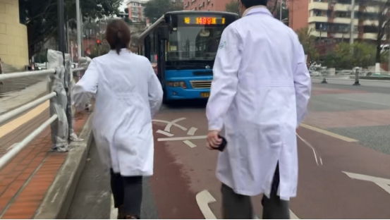 “快!带上急救箱!”医护人员没有丝毫迟疑,第一时间拖起急救设备,冲出医院大门。几名身穿白大褂的医护人员一路狂奔,仅仅用时不到两分钟便赶到了公交车旁。
