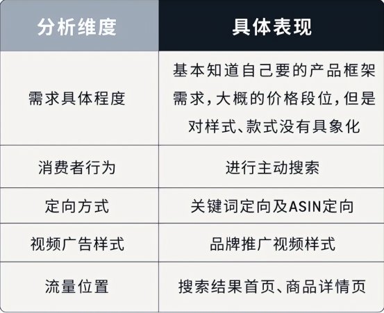 以男孩用水杯为例,基于ASIN的流量构成分析,主要消费者群体购买需求较为明确,会进行主动的搜索行为,因此采用关键词定向与ASIN定向相结合的品牌推广视频形式。