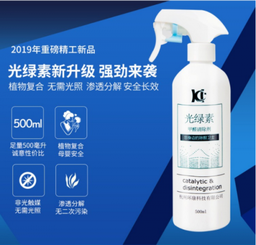 而光绿素能对空气,水源中的有害物质就行分解。但光绿素更安全有效,因为本身提取的就是植物光感分子,所以对光没什么要求,而且与甲醛产生有机反应,不会产生二次污染。像欧盟等发达国家也都开始用光绿素取代光触媒用于室内甲醛治理。数据表明,起效作用快,治理程度高,只需要简单喷洒,就能让甲醛值快速下降,达到了安全的范围值。