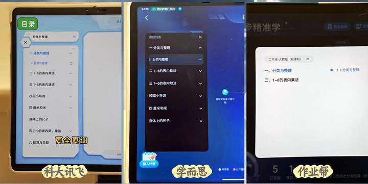 A:在AI精准学方面,科大讯飞T30 pro 的知识图谱颗粒度更细,充分考虑了小学生的认知规律。以小学二年级数学「分类与整理」为例,系统细分出 9 个知识锚点,通过颜色和形状的双重标识,让孩子直观了解自己的掌握情况。同时,科大讯飞 AI 学习机还支持跨年级知识溯源和本地化考情匹配,帮助学生将知识漏洞从根源补起,同时更精准地练习到常考知识点。