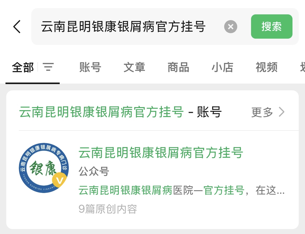 官方公众号预约:关注“云南昆明银康银屑病官方挂号”官方微信公众号,点击菜单栏“预约挂号”提交信息;
