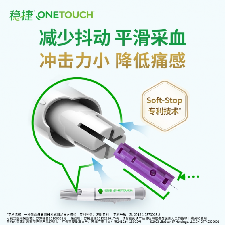 在确保精准的同时,强生稳捷智优血糖仪(低痛款)在舒适度上实现了重要突破:30G采血针配合Soft-Stop专利防抖技术,显著降低了采血痛感;仅需0.4微升、约芝麻粒大小的采血量有效减轻了糖友的畏惧心理;9档可调节深度设计让不同肤质的糖友都能实现个性化设置。这些细节上的创新,使得日常监测从“负担”转变为可持续的健康习惯。