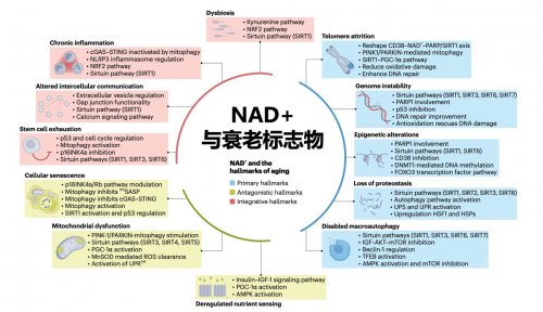 专注于衰老研究的顶级期刊《Nature Aging》上又有重磅研究发表:NAD+已成为抗衰老领域的“黄金靶点”,不仅是细胞能量代谢的核心燃料,更是连接DNA修复、线粒体功能、炎症调控、端粒损耗、干细胞耗竭、细胞衰老等衰老12大标志物的关键枢纽。