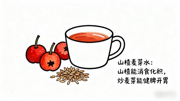 第二个是山楂麦芽水,孩子积食、没胃口时喝很合适。取干山楂5颗(提前去核)、炒麦芽10g、冰糖2-3颗(可选),把山楂和炒麦芽洗干净,放进小锅里加300ml水,煮15分钟后放冰糖调味,放温后给孩子喝。山楂能消食化积,帮孩子把胃里的“积食”排空;炒麦芽能健脾开胃,缓解吃多了不消化的胀肚感,而且味道酸甜,孩子不会抗拒。