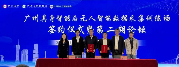 11月5日,广州具身智能与无人智能数据采集训练场签约仪式暨第二期论坛在广州大学黄埔校区成功举办。会上,广东天太机器人有限公司(以下简称“天太机器人”)与广州大学人工智能学院正式签署合作协议,共同成立“广州大学—天太机器人研发实验室”,标志着双方在产学研用深度融合、具身智能机器人整机开发与前沿技术探索方面迈出关键一步。