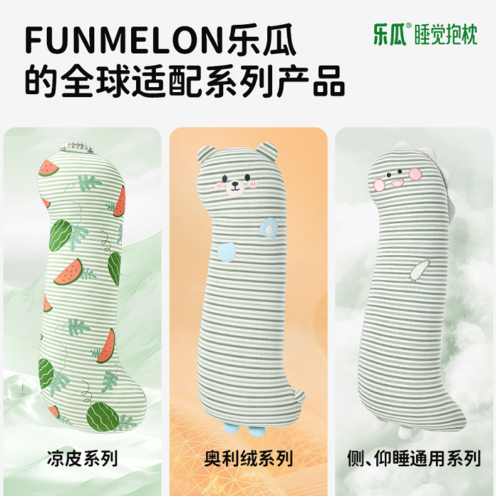 乐瓜睡觉抱枕(Sleeping Body Pillow)之所以能够跨越国界,关键在于其产品设计始终围绕“人”的差异化需求展开。针对不同人群、地区的特点,文化习惯与用户偏好,FUNMELON乐瓜打造出多条风格与功能并重的产品线:
