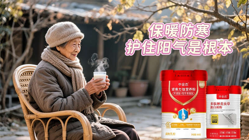 中老年人消化吸收能力减弱,单靠饮食有时难以满足营养需求,选择贴合时令的营养补充,能事半功倍。比如中金态的肾骨力肽营养粉针对冬季骨骼易脆、肾气需养的特点,含初乳碱性蛋白(CBP)、牦牛骨髓肽的营养粉,可助力骨骼新陈代谢、补髓壮骨,搭配牛肾肽益肾固本,还有硒、锰、镁等成分协同护骨;而多肽蝉花虫草蛋白质粉,既能借助虫草“补肺益肾、安精神”的特性改善睡眠、强体质,其中的牛脾肽、山药肽还能健脾养胃,0蔗糖设计也适配中老年需求。这类易吸收的营养补充,就像“便携的养生羹”,为冬日健康添份底气。